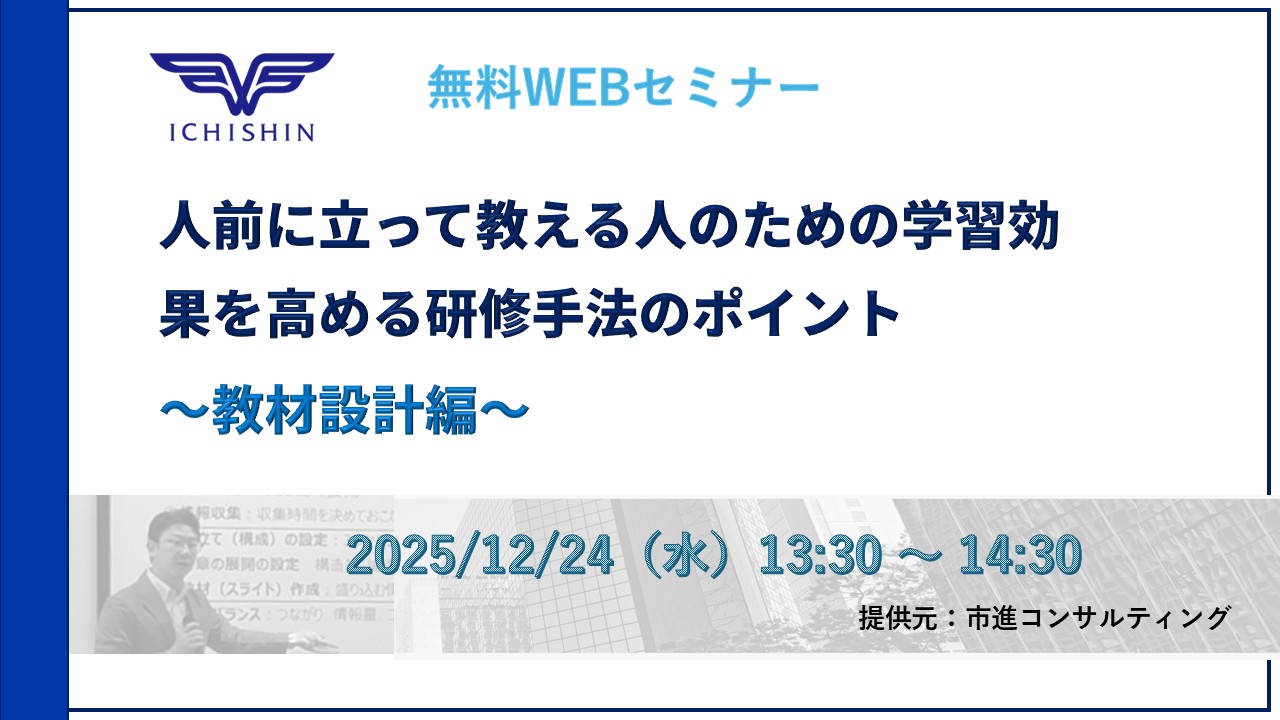 12月24日開催 人前に立って教える人のための学習効果を高める研修手法のポイント ~教材設計編~