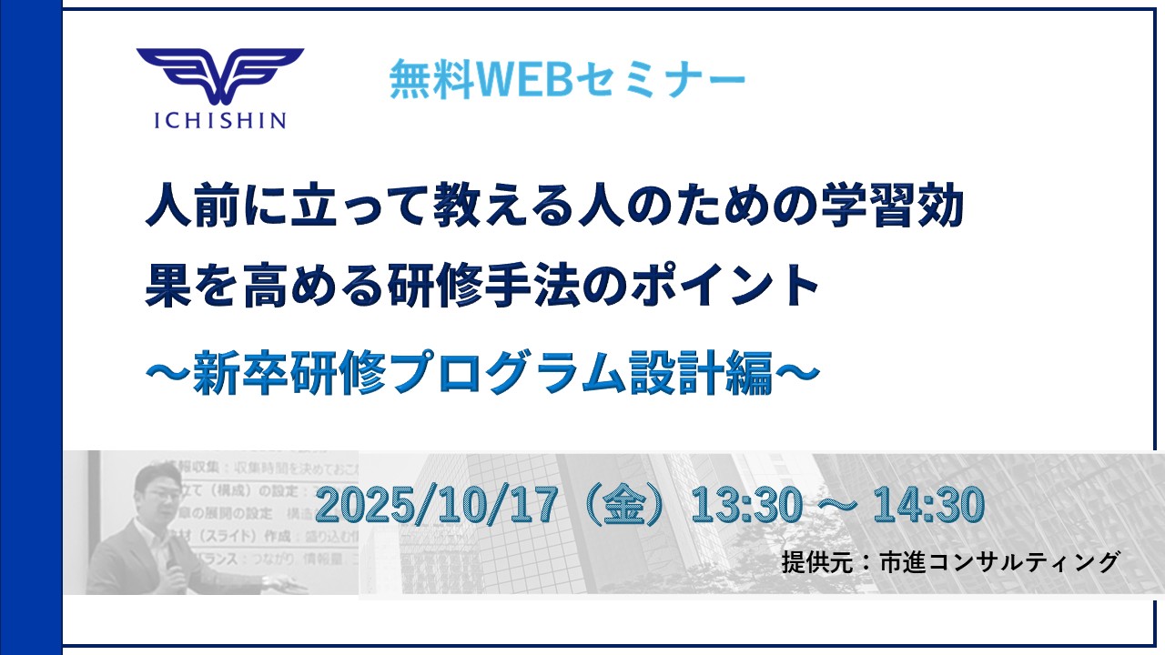 新卒社員研修の内製化が増えている中で、プログラムの設計に課題のあるケースが散見されます。このセミナーでは、若手の学び方の特性を知る弊社が最近の新卒社員に合った研修設計のポイントと一部ノウハウをお伝えします